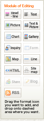 When you select Text, you can enter up to 1000 characters in a single module. Also in each Text you can change the size and the color of the text and its link. When you want to make changes, please open the editing screen and then by dragging with the mouse choose the desired part and click the button which helps you create the effect you want.